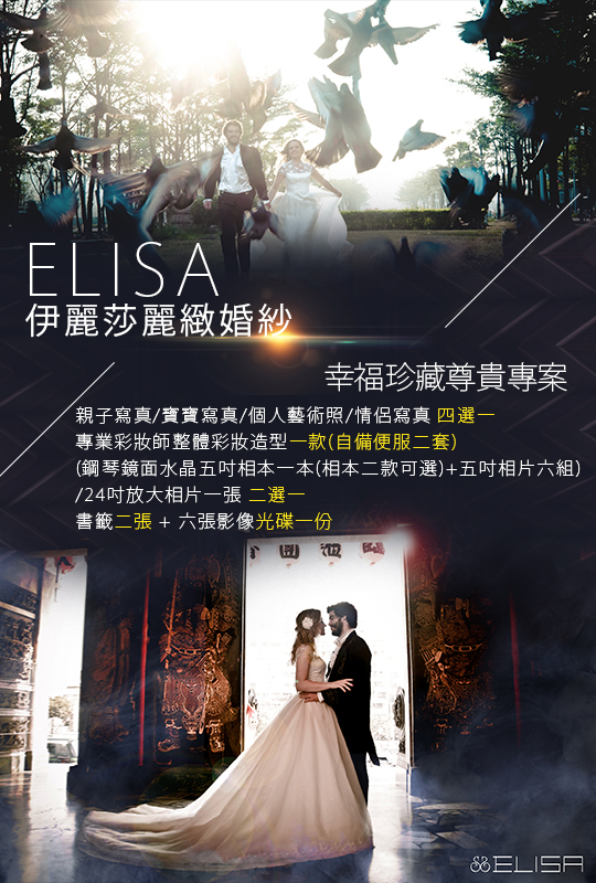 【伊麗莎麗緻婚紗】推出幸福珍藏尊貴專案!親子寫真、寶寶寫真、個人藝術照、情侶寫真皆可選!為你留下美麗的笑容和滿滿珍貴回憶!